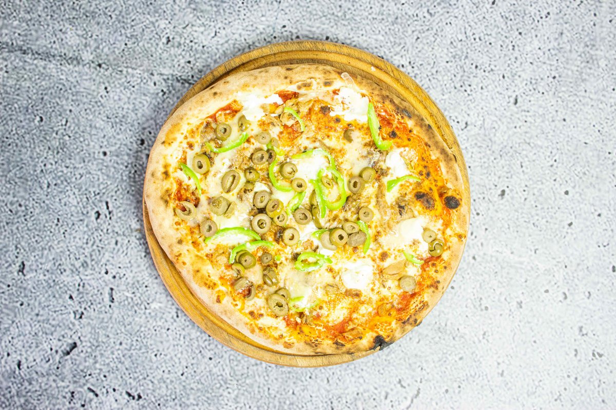 Përgatitet me salcë të veçantë domatesh, domate, salami, spec jeshil, ullinj, kërpudha