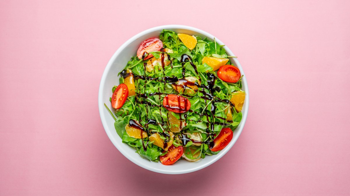 Rukola, sallatë jeshile, baby spinach, avocado, arra