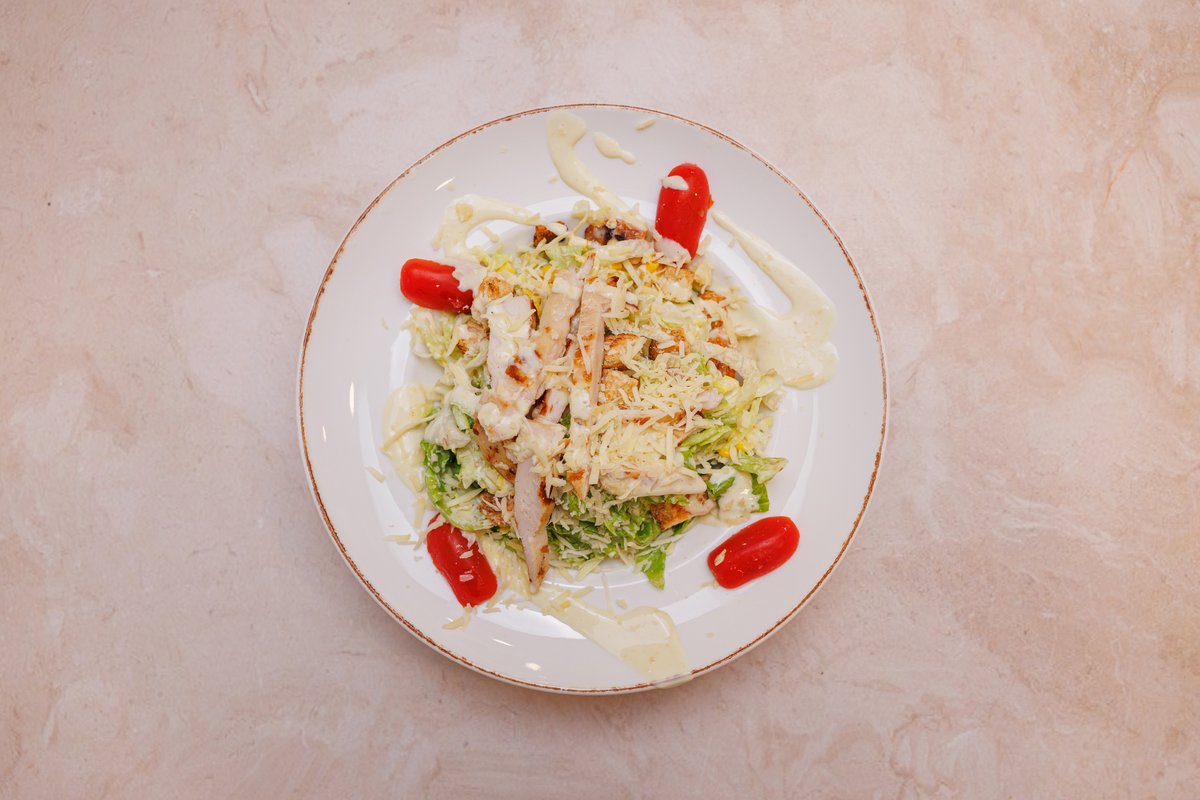 Sos, çesar, domate, qepë, sallatë, djathë