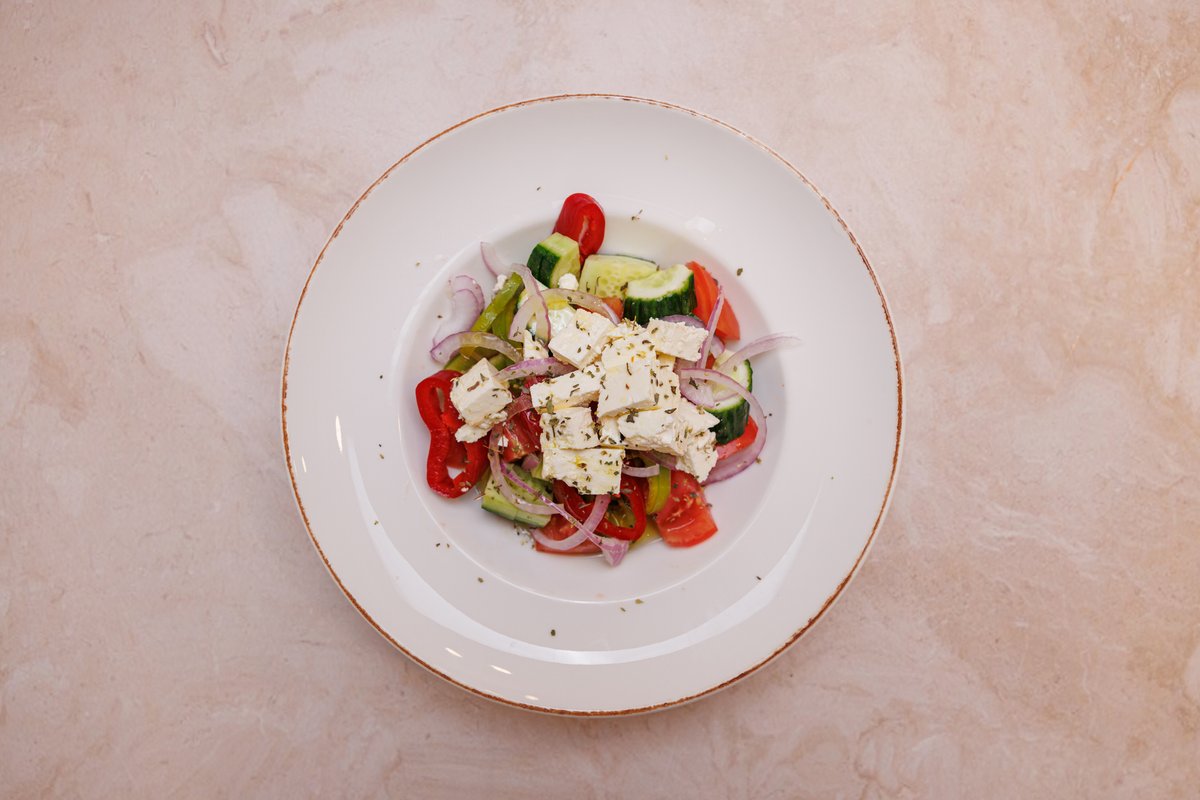 Kruto, domate, kastravec, qepë të njomë, djathë i bardhë i njomë