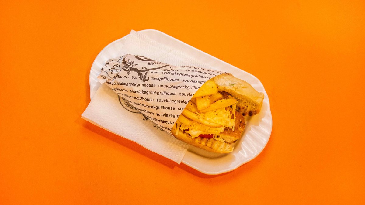 Pita, sos, musard, domate, qepë, patate