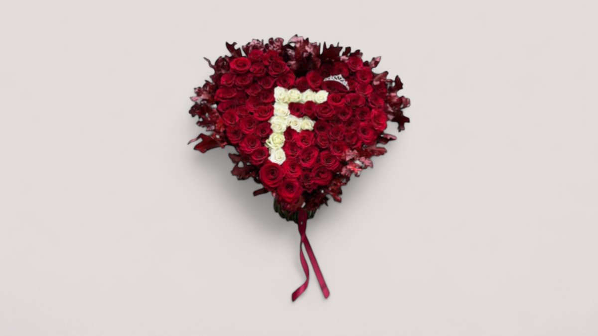 Buqetë Ne Forme Zemre Me Trendafila Te Kuq