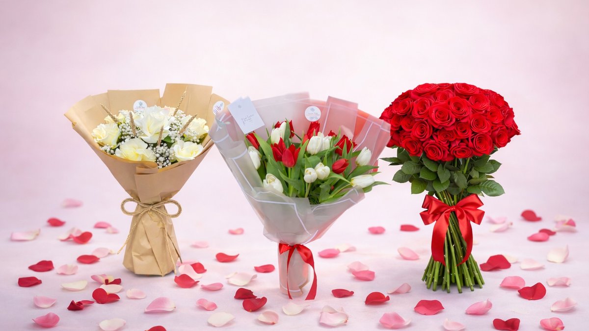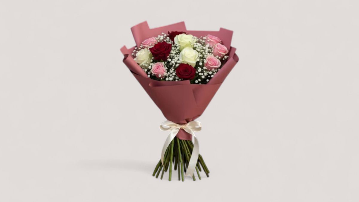Buqetë Me Trendafila Te Kuq,Te Bardhe Dhe Roze