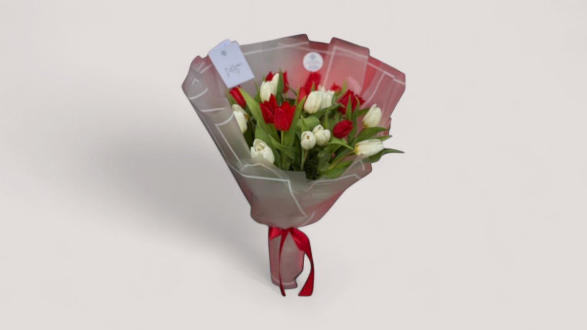 Kompozim Me Tulipan Te Kuq Dhe Te Bardhe