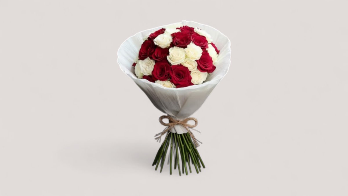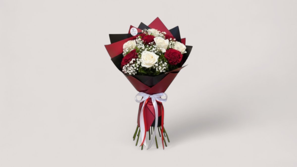 Buqetë Me Trendafila Te Kuq Dhe Te Bardhe