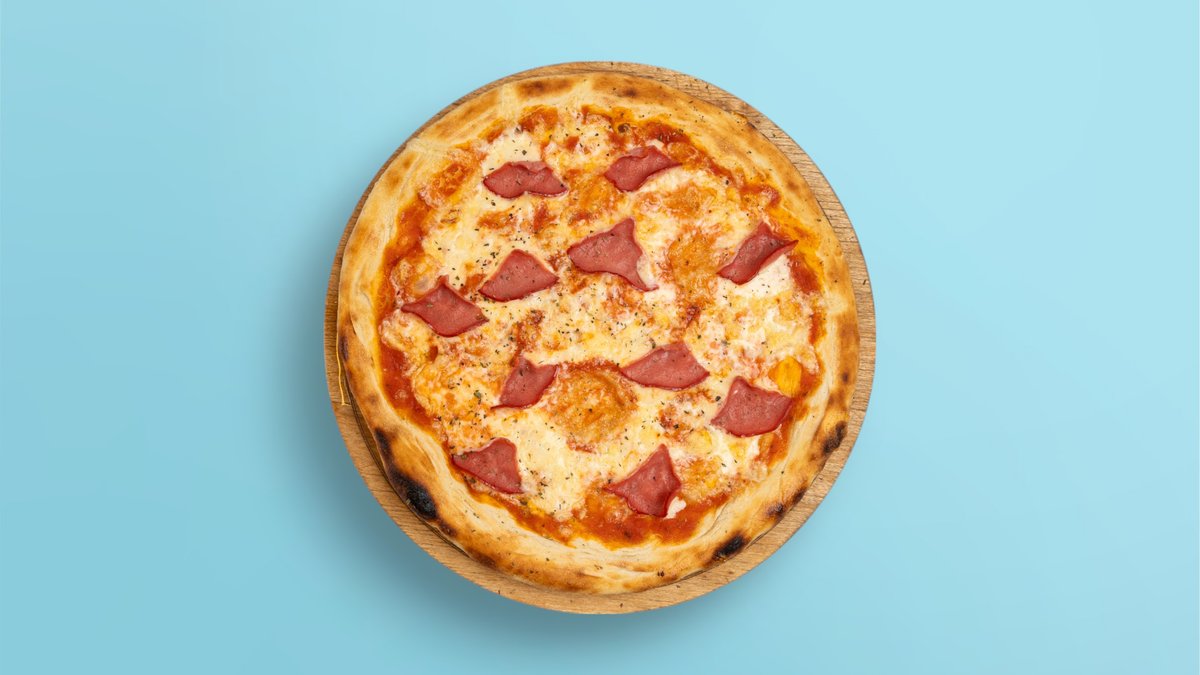 Pica klasike me proshutë, sos domatesh, kaçkavall të shkrirë dhe rigon aromatik