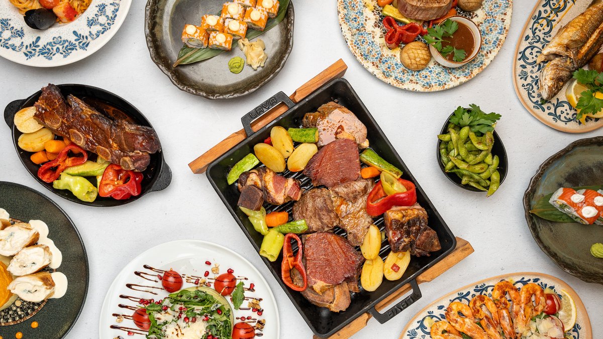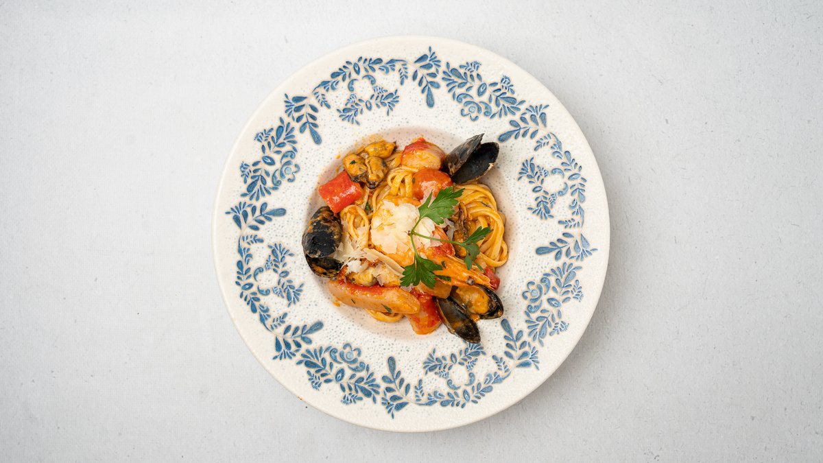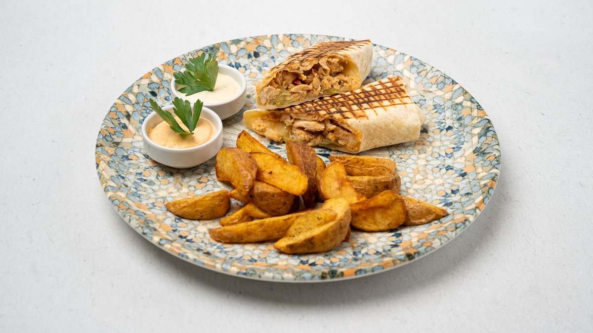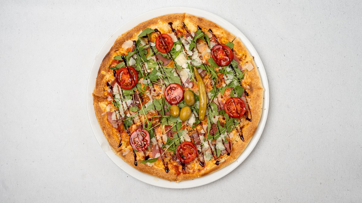 Proshutë e terur, burrata, kaqkavall, rukolla, ullinjë, sos domatesh