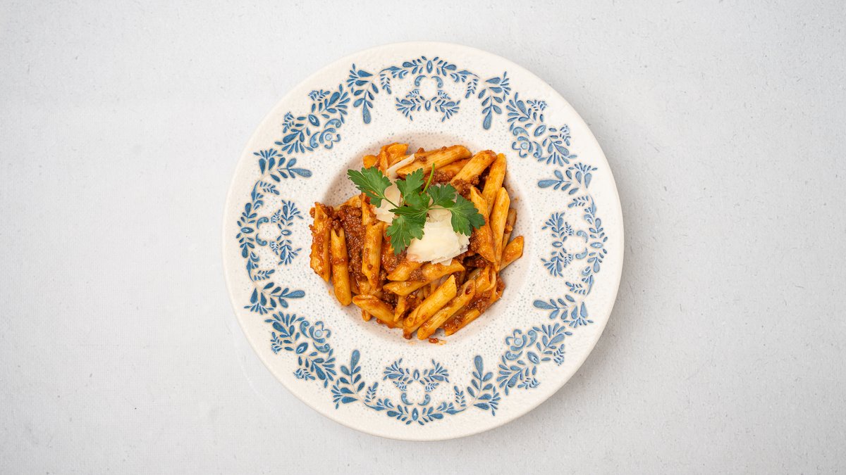 Përshutë e terur, kaqkavall, rukolla, sos domatesh