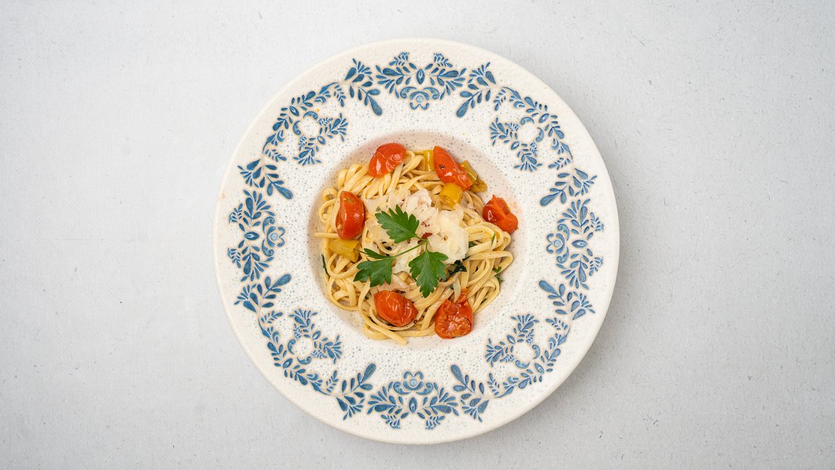 Përshutë e terur, kaqkavall, sos domatesh, vezë, ullinjë, misër, kërpurdha