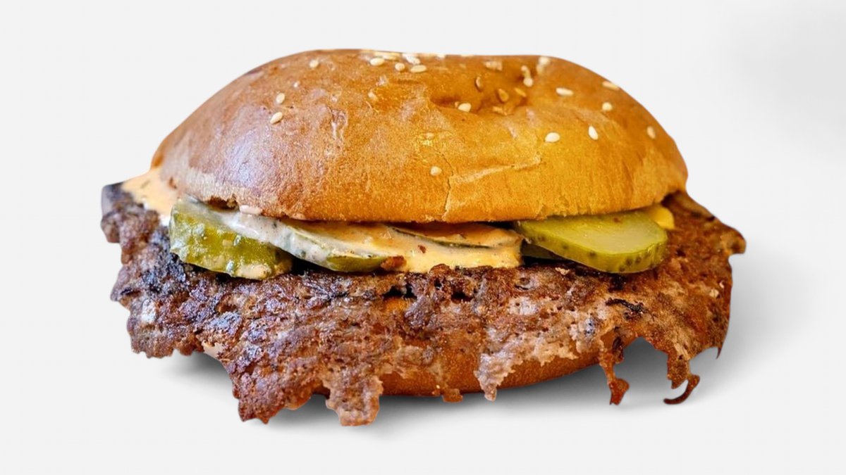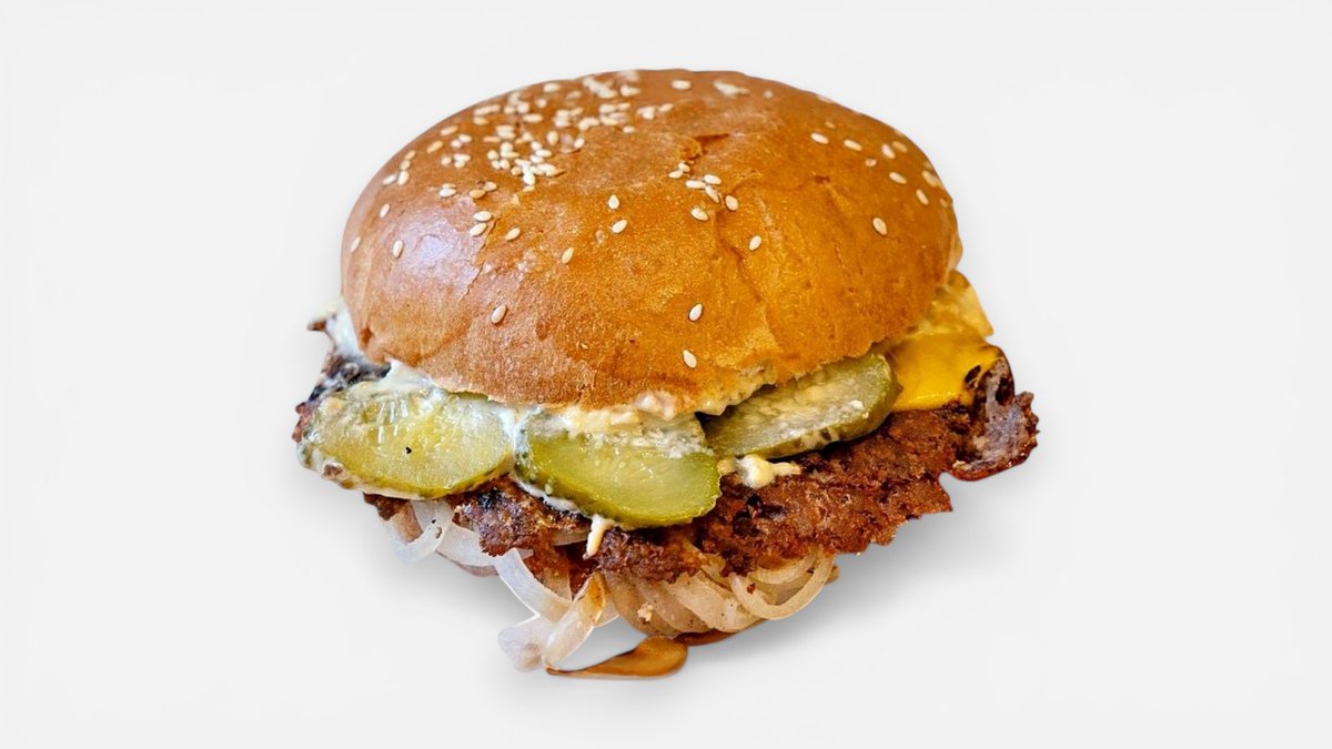 Homemade bun, 120g ground beef, cheddar, pickles, original sauce
