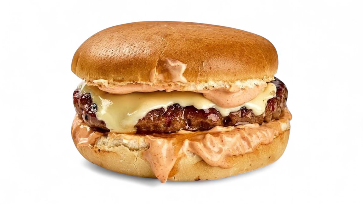 Një pleskavicë e përgatitur me dorë me 150g mish viçi, e mbuluar me dy feta djathë të shkrirë në mënyrë perfekte, e përfunduar me salcën tonë të veçantë për hamburger dhe një bukë të butë. Shërbehet me patate të skuqura të erëzuara me kripë dhe rigon.
