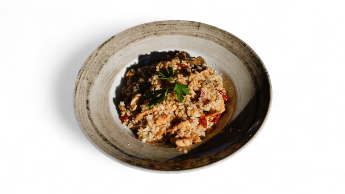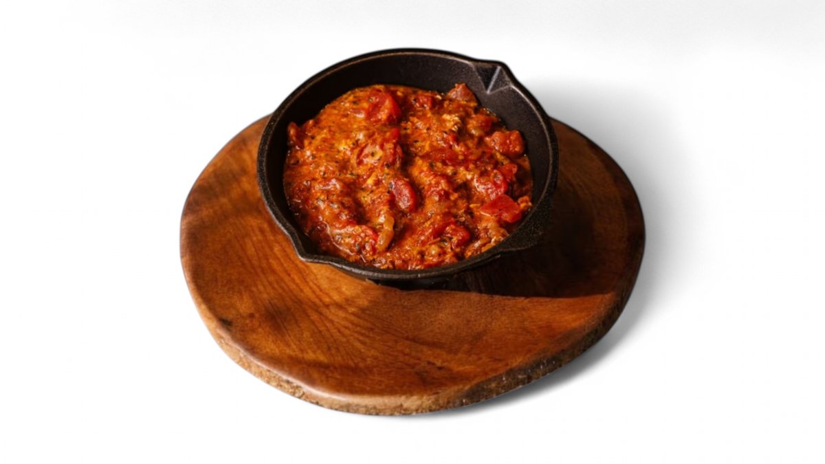 Proshutë, salcë speciale shtëpie, domate, rukola, speca të kuq