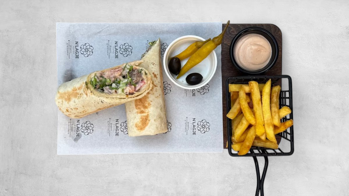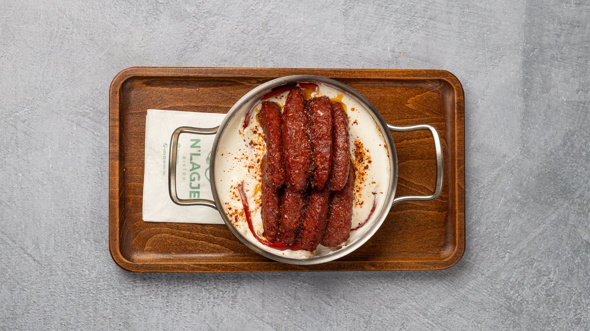 Vezë të ziera, djathë, ajvar, lëngë i ftohtë