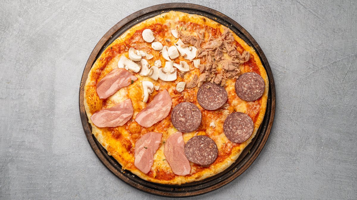 Salcë domatesh, këpurdha, proshutë, suxhuk, tuna