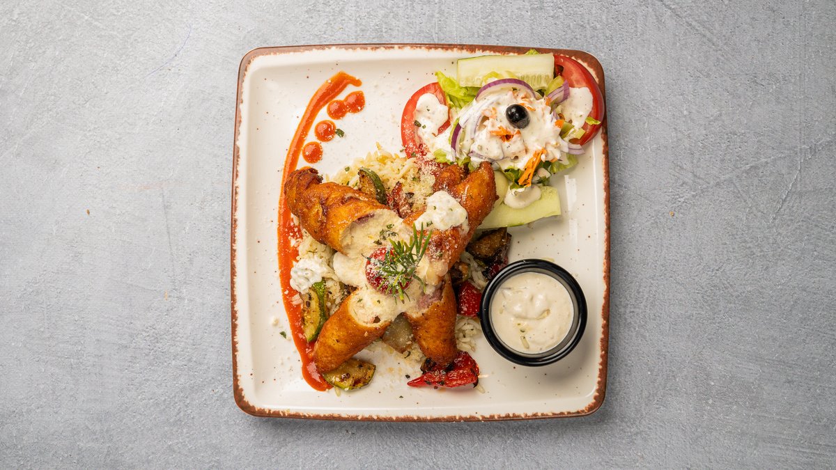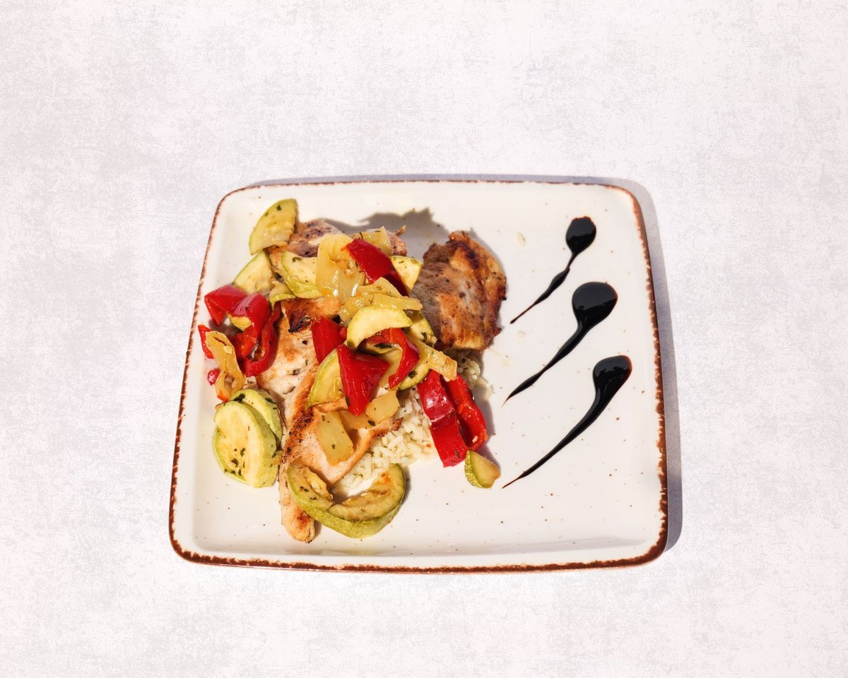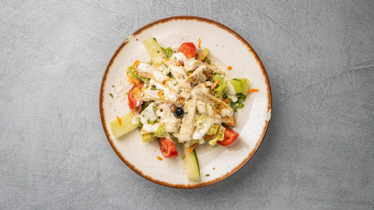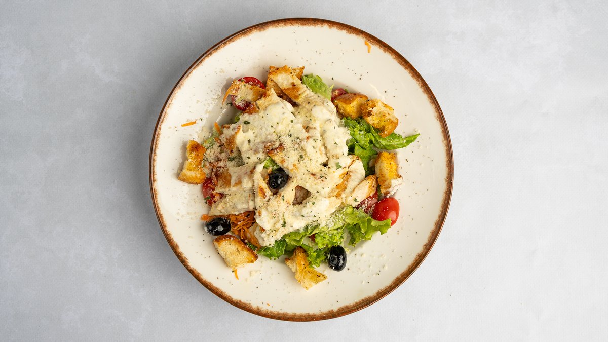 Sallatë, oriz, perime, proshutë, djathë, salcë chantilly