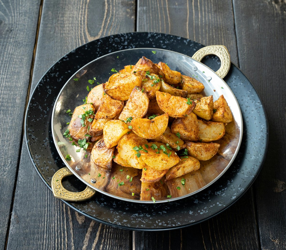 Pleskavice viçi, djathë gouda, qepë të ëmbla ,salcë barbeque dhe patate te ferguara