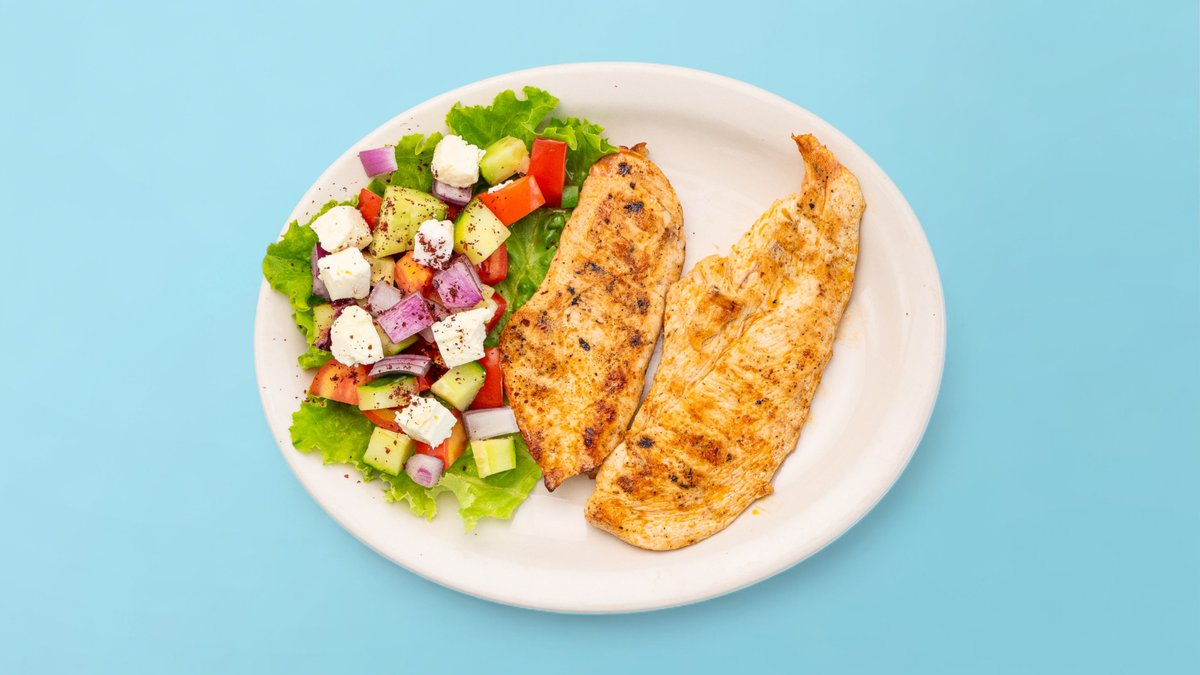 Gjoks pule, patate, kungull, brokoli, përlazë dhe gjalpë.