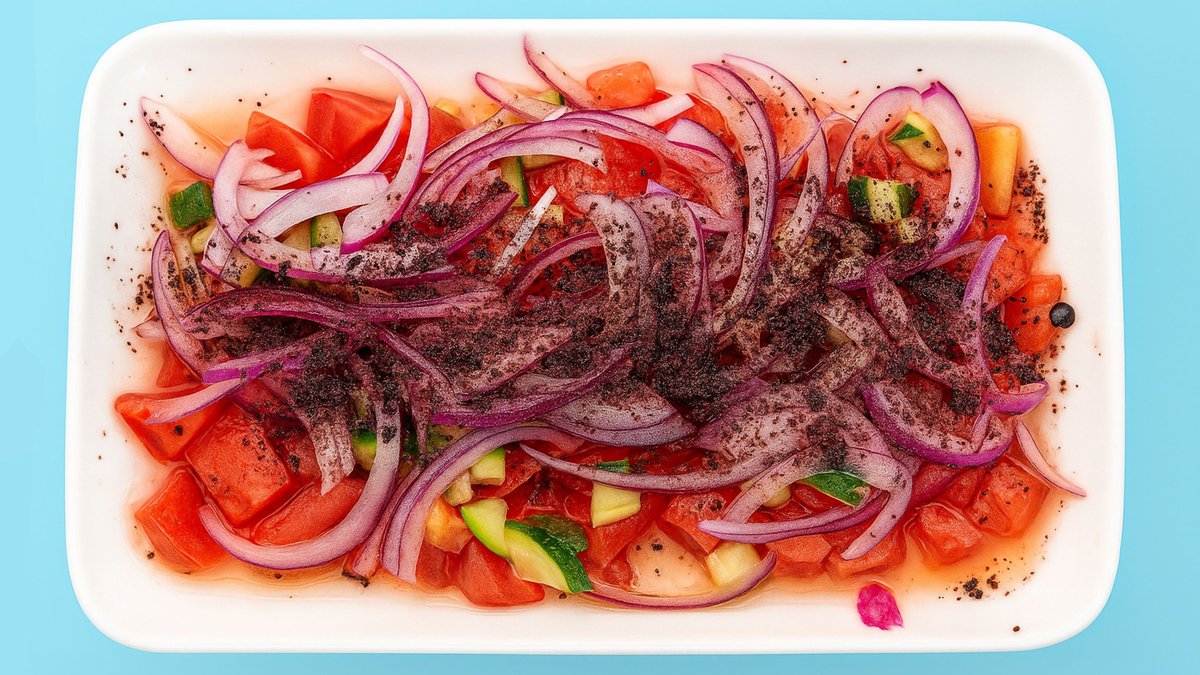 Domate, qepë, speca, vaj, kripë, limon, uthull