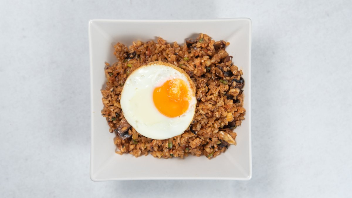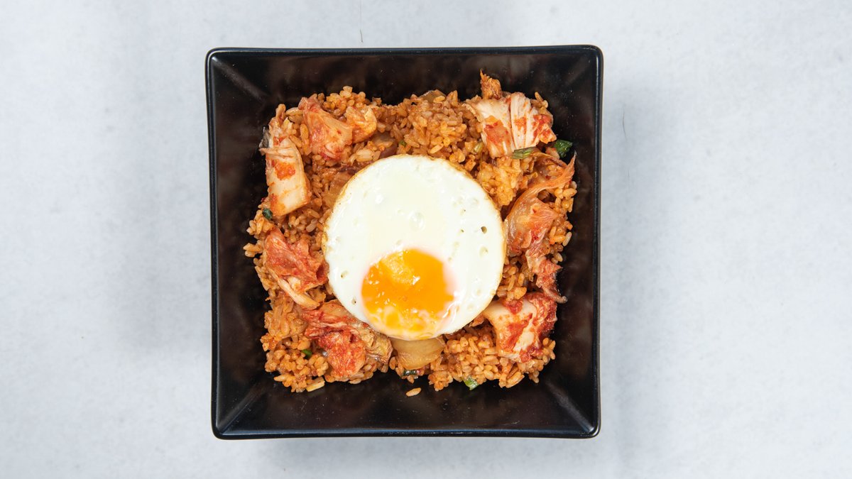 Kimchi fried rice is a simple rice dish stir-fried with Korean spices such as gochujang, sesame oil, soy sauce and it comes with a fried egg on top.