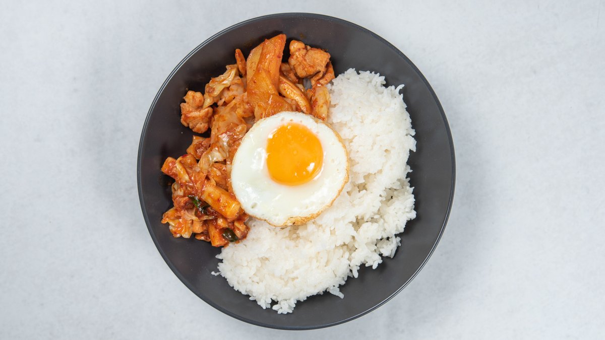 Topbap - Kimchi Pork is a hearty Korean rice bowl topped with stir-fried pork and spicy, tangy kimchi, combining bold flavors with satisfying warmth.