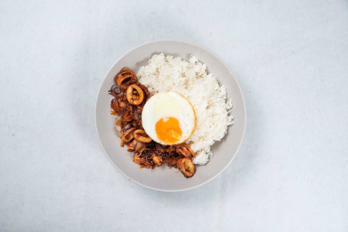 Topbap - Spicy squid is a spicy Korean dish made with stir-fried squid with Korean Gochujang based sauce.