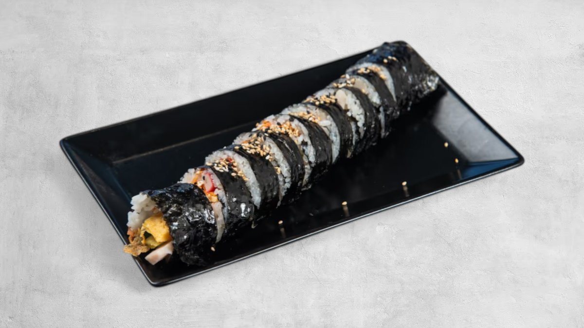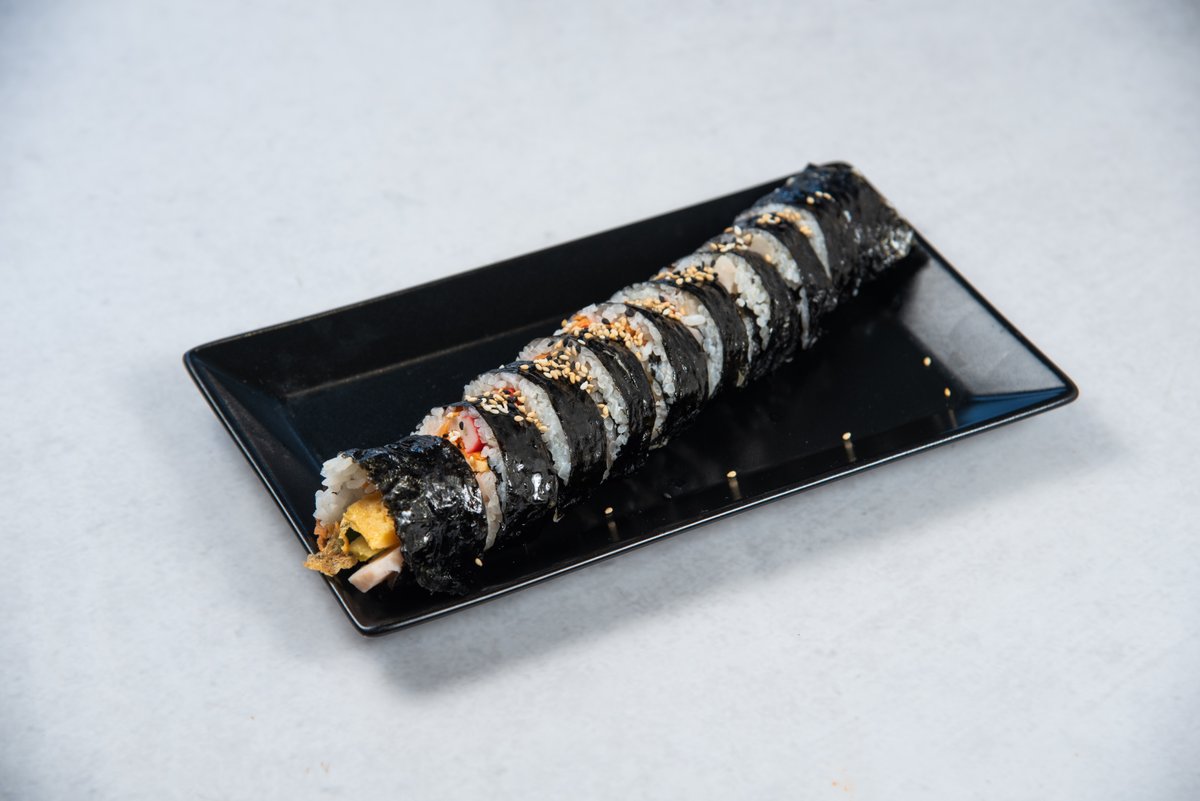 Nori seaweed, rice, carrot, cucumber, surimi, pickled radish, egg, ham, pork belly.