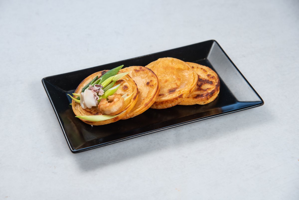 Korean pancake, or jeon, is a savory dish made from a batter of flour, vegetables, and sometimes meat or seafood, pan-fried until crispy and golden.