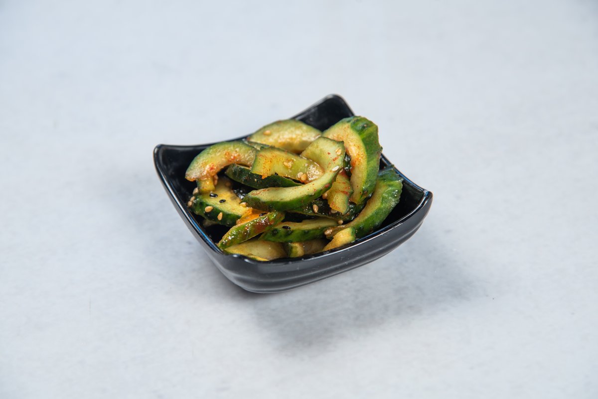 150 grams. Fresh cucumber with Korean chili pepper, soya sauce, sesame oil and sesame.