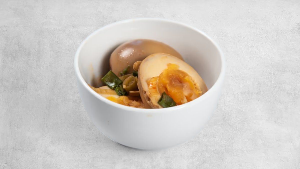 2 marinated eggs - Soft boiled eggs marinated with soya sauce and garlic.
