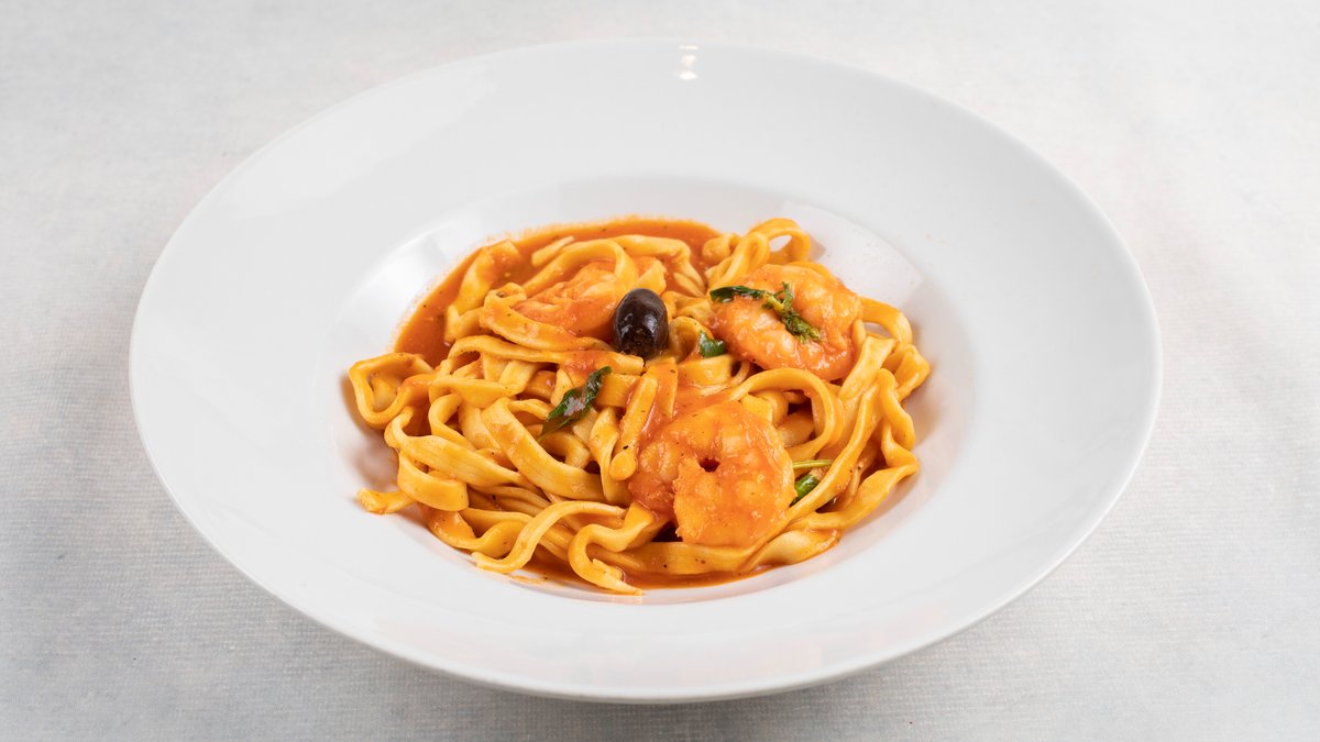 Kozice,b.vino,paradajz sos,b.luk,parmezan,z.bilje