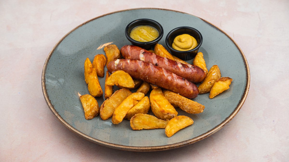 Tri jaja, pohovani kačkavalj, viršle, ajvar, feta, naš sos