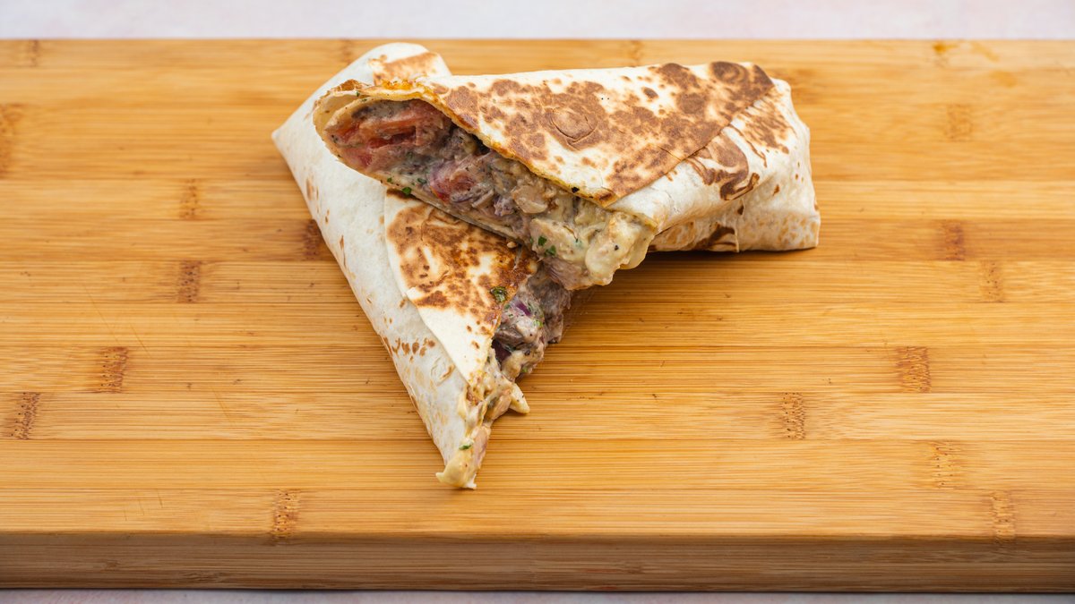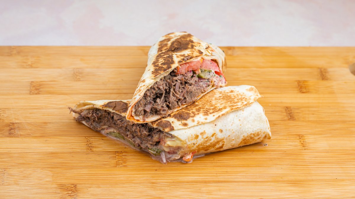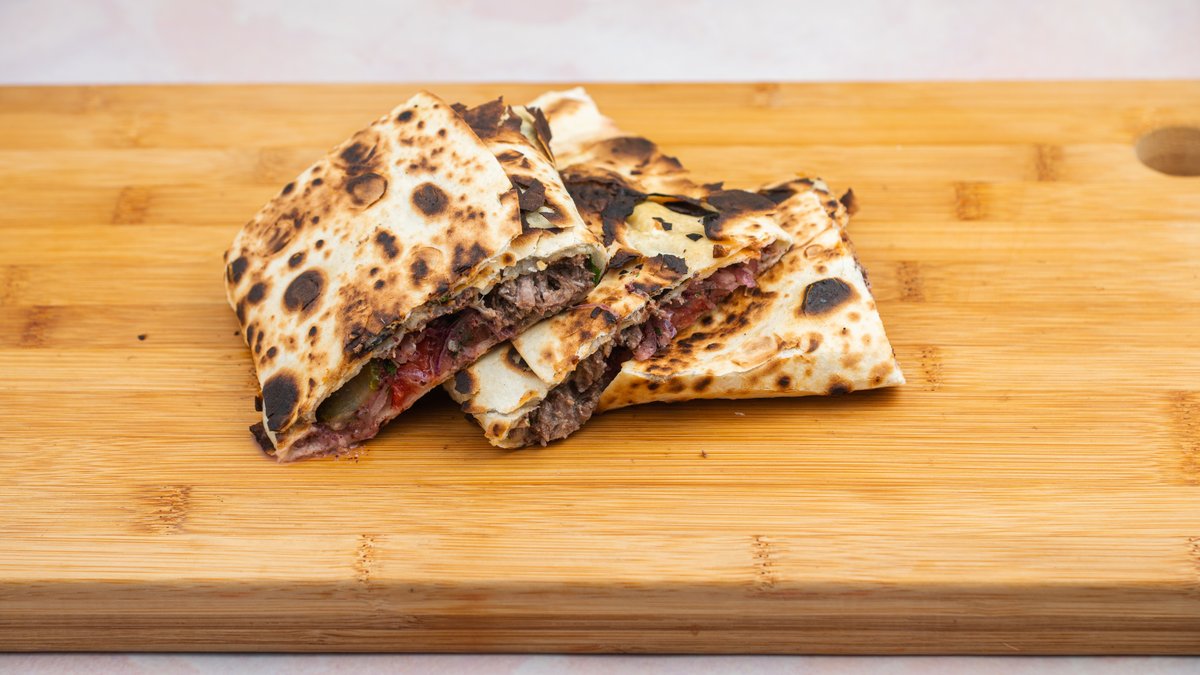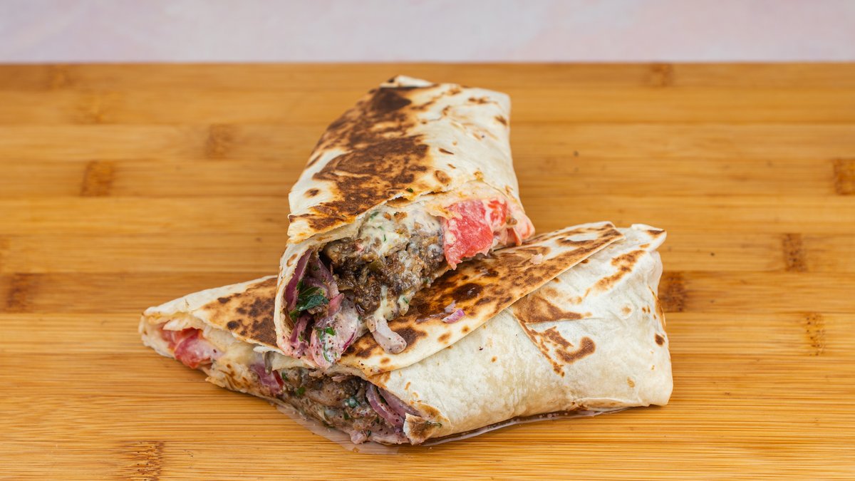 Marinirano seckano juneće meso, paradajz, humus, kiseli krastavci, tahini sos, začinjeni crveni luk sa peršunom. Uz jelo dobijate pomfrit + sos po izboru + piće po izboru.