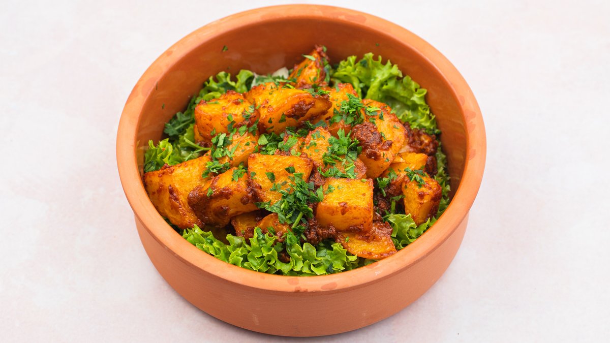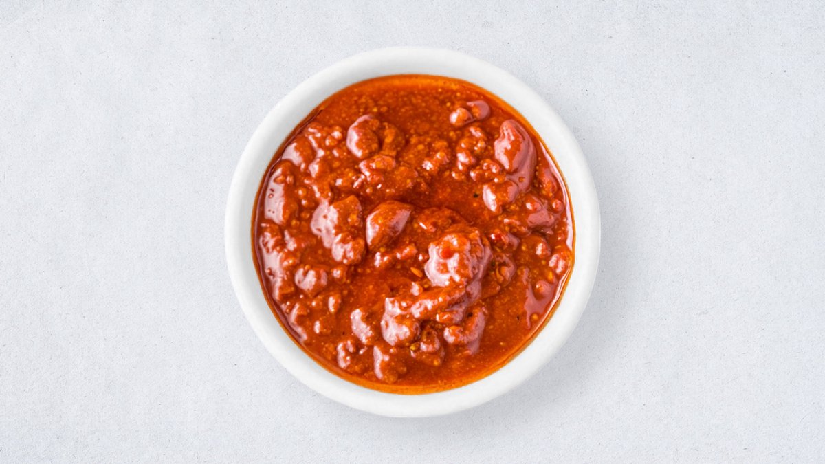 Biber pasta, mešavina orijentalnih začina, luk, nana, paradajz, masline
