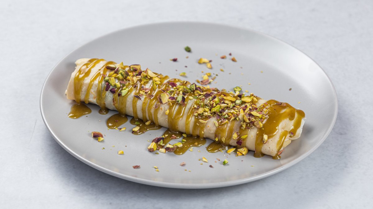 Palačinka sa Nutellom, karamelom i kikiriki puterom.