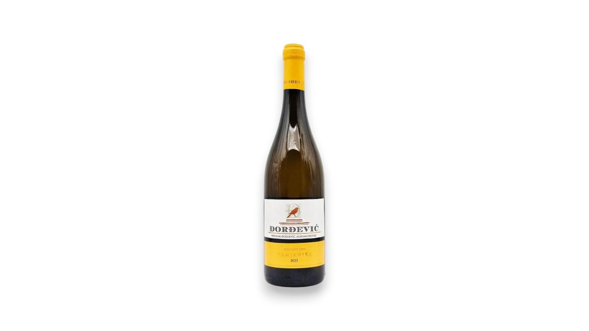 Belo suvo vino iz sorte vinograda Tamjanika podruma Đorđević iz Aleksandrovca, sadrži sulfite