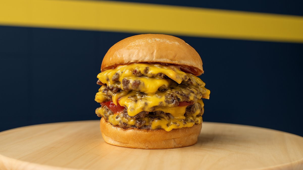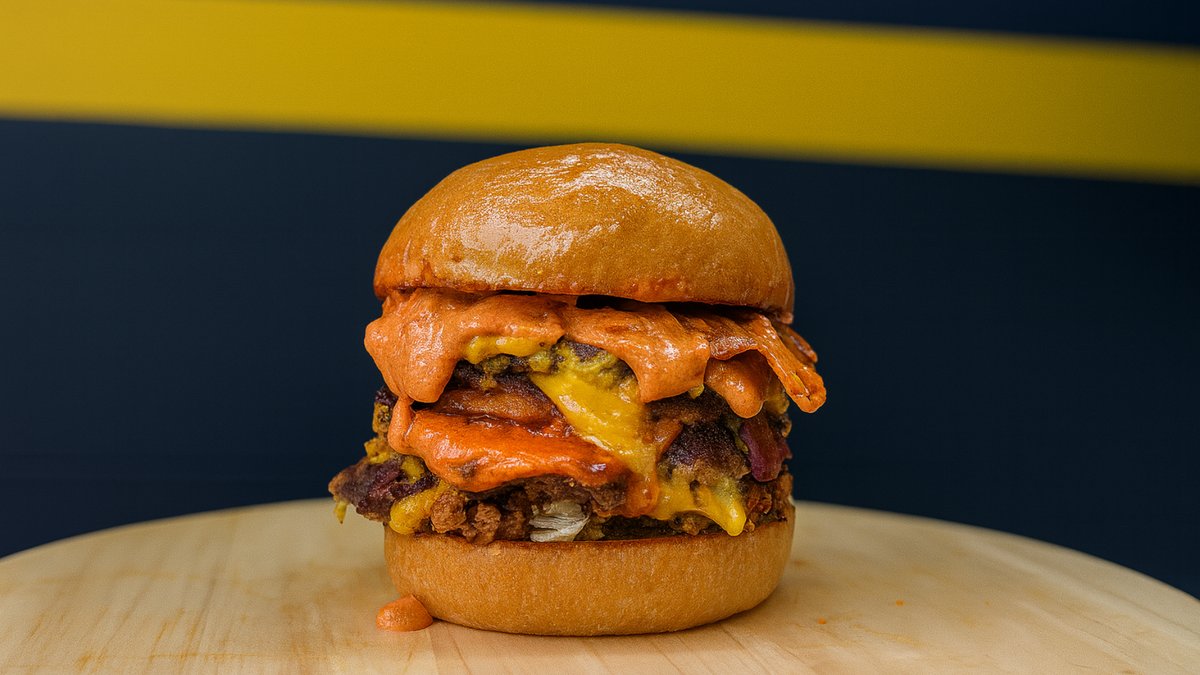 Slanina, BBQ sos, hrskavi luk, 2 mesa
