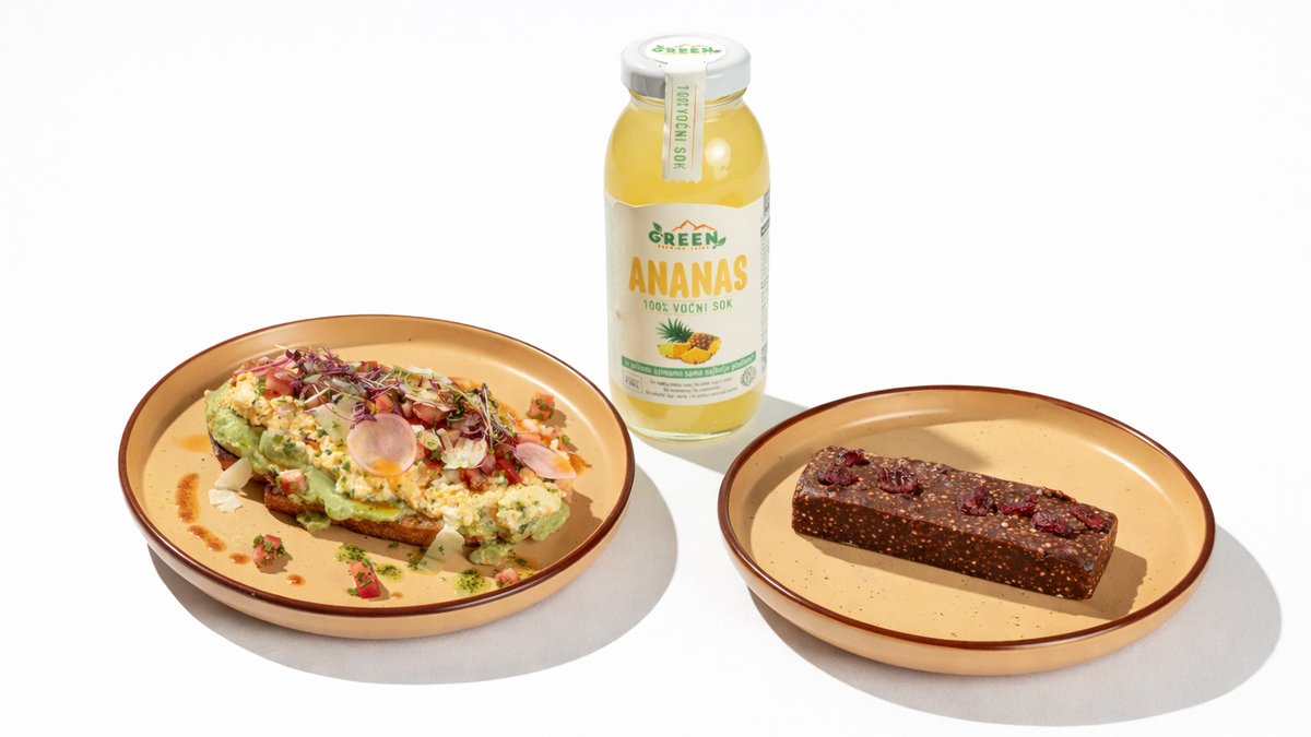 Avokado tost: Avokado, kremasta kajgana, salsa od paradajza, svež bosiljak, parmezan, mikro bilje, ulje od vlašca. Gr: 350 | Kcal: 580 | P: 22g | UH: 38g | M: 38g. Quinoa crunch: Gr: 110 | Kcal: 360 | P: 8g | UH: 32g | M: 22g.
