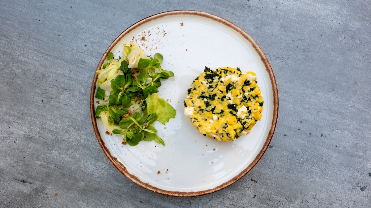 3 jaja, spanac i kozji sir, bejbi mixs, domaci hleb od heljde