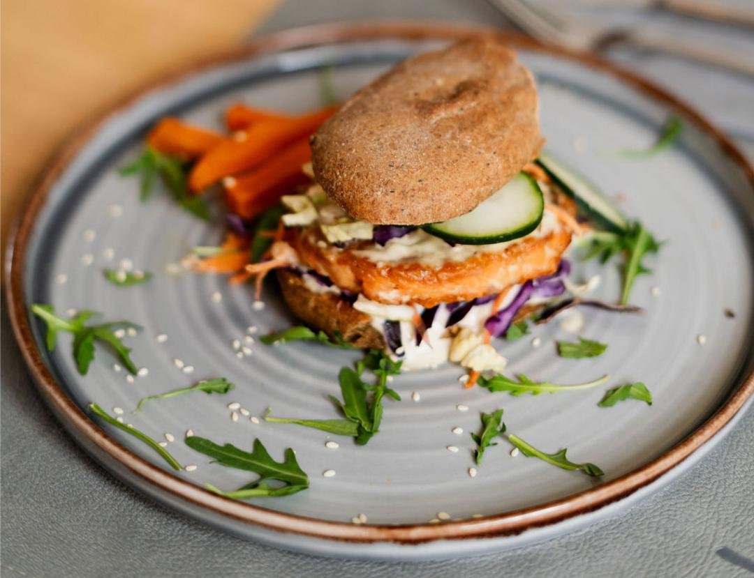 Zemicka od spelte, piletina, kozji sir, mix salata