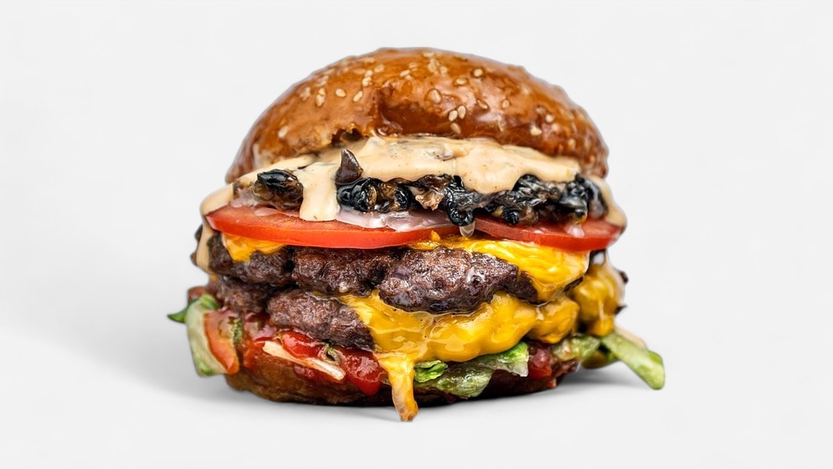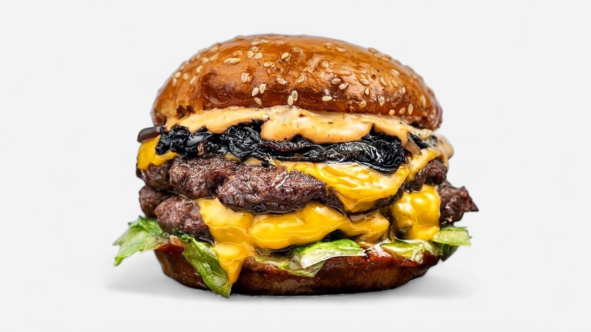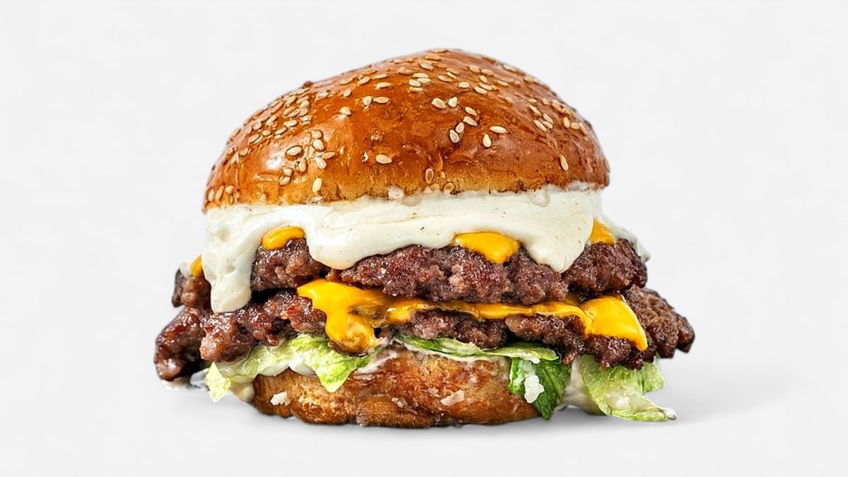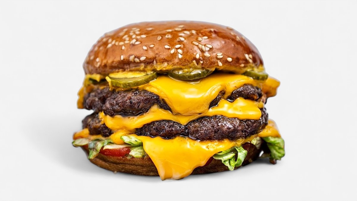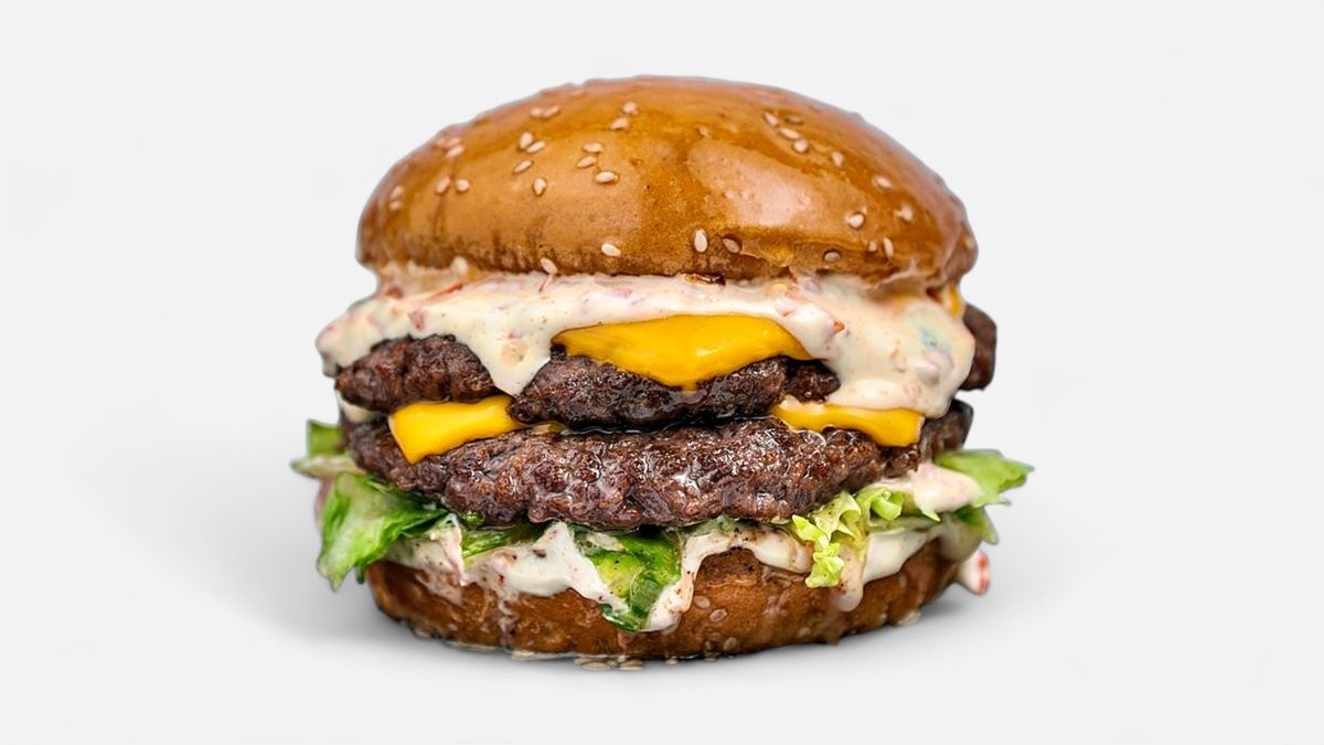 Dupli čedar sir, heinz kečap, senf , kiseli krastavci, ajzberg, burger sos, 130g (100%) junetine