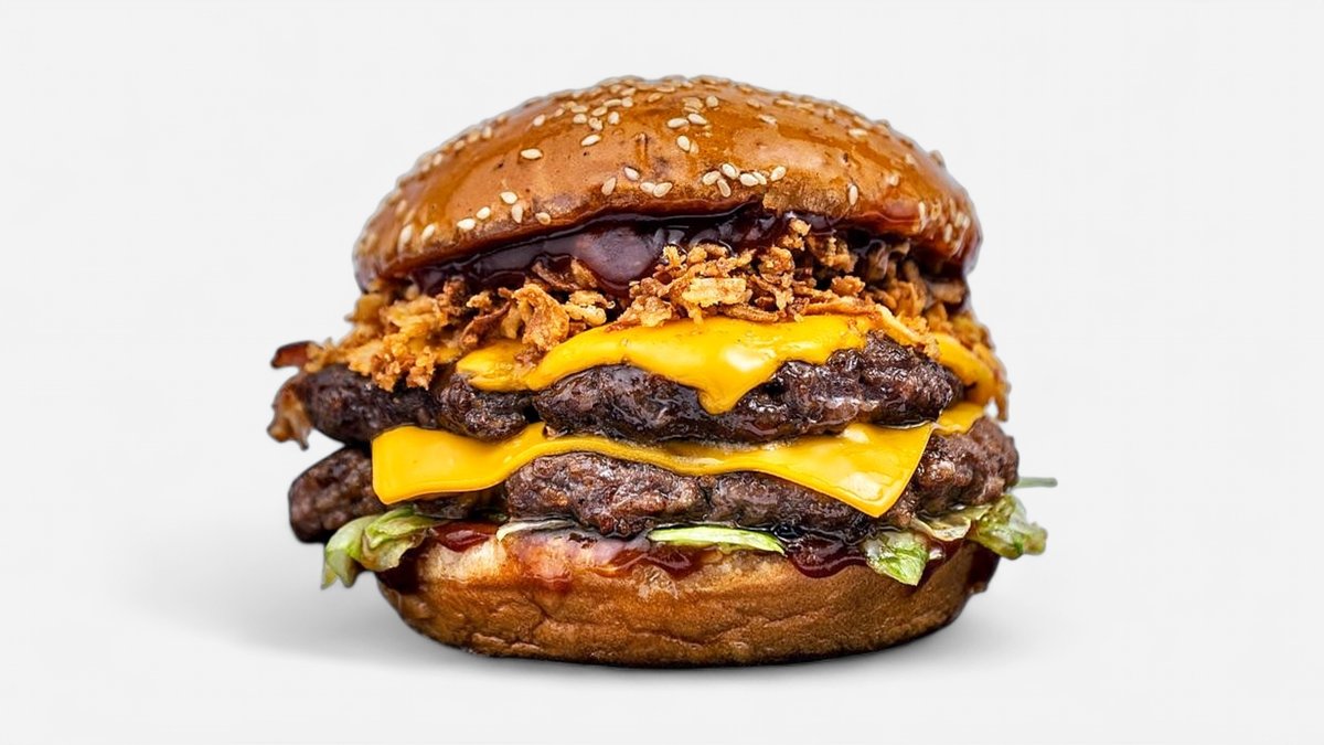 Hrskavi luk,heinz kecap, burger sos, ajzberg, dupli cedar sir, 2x130g 100% junetina