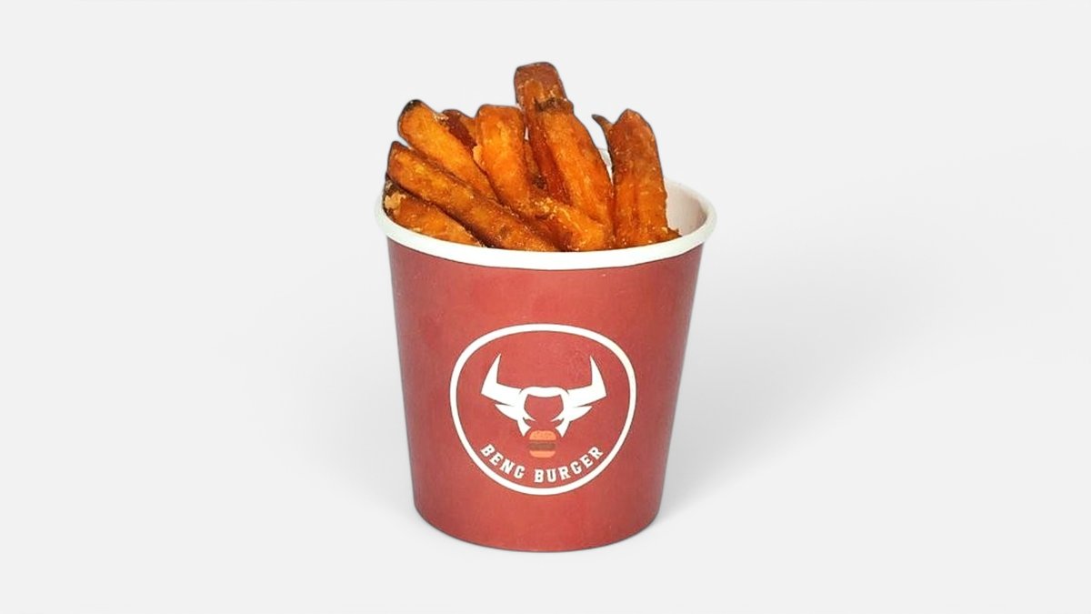 Single garlic parmesan burger, pomfrit i dubai sweet