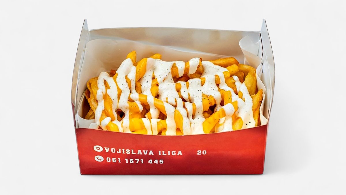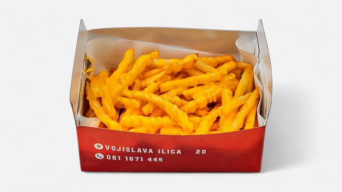 Dupli čedar sir, hrskavi luk, burger sos, heinz kečap, ajzberg, 130g (100%) junetine