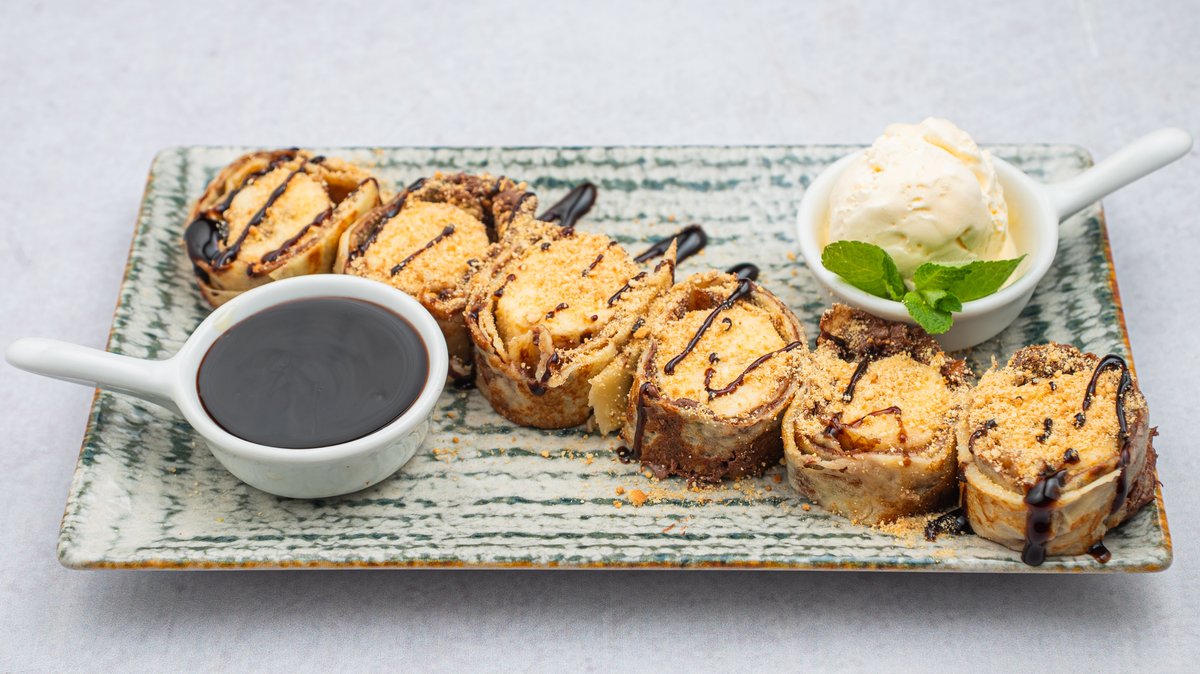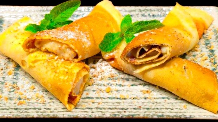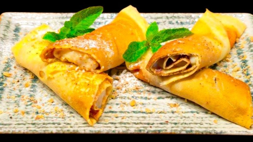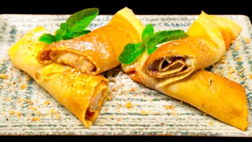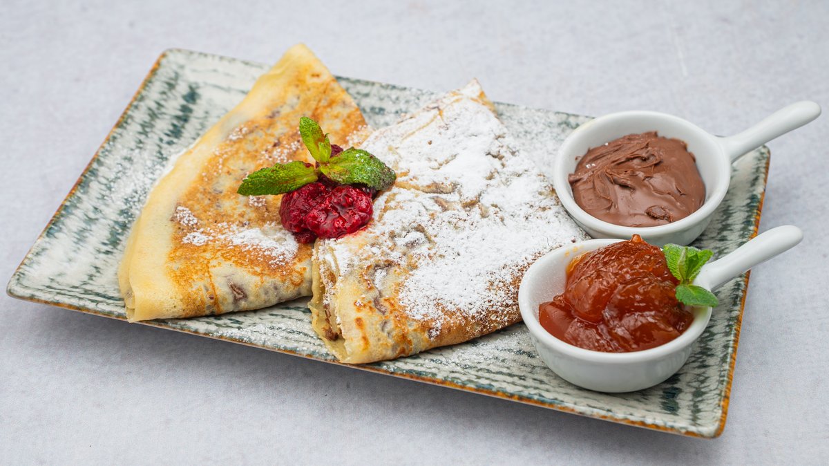 3 palačinke, nutella, plazma, narandža, sladoled od vanile, šlag, toping