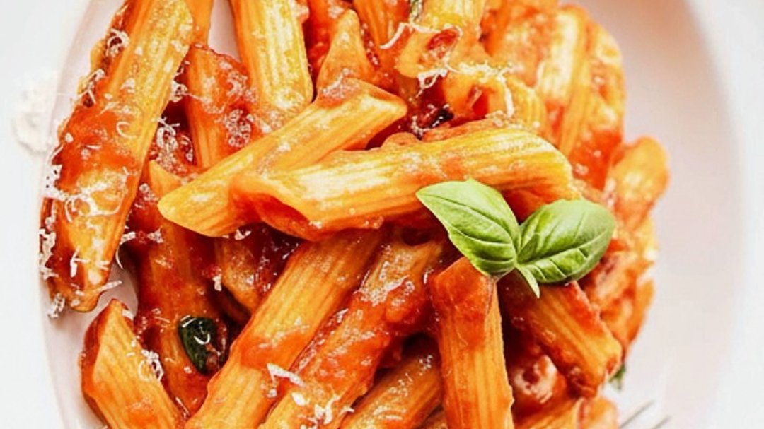 Pasta, paradajz, crni luk, beli luk, bosiljak