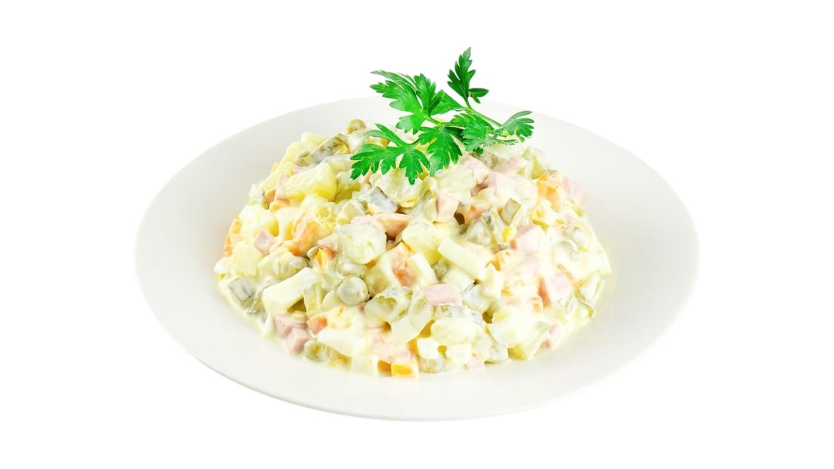 Krompir, šargarepa, jaje, kobasica, majonez, grašak, kiseli krastavac, so, biber.