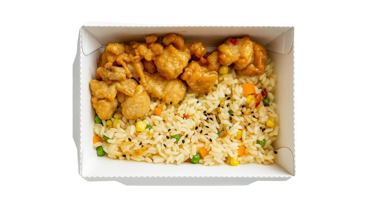 Pileće filete i but, basmati pirinač, barberries, šargarepa, beli luk, kurkuma, kumin.