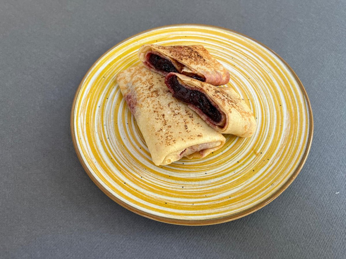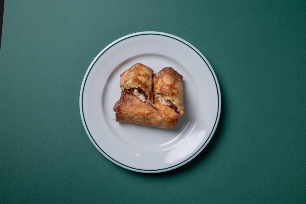 Palačinke, pileća grudi, so, crni biber, gauda, sušeni paradajz (200 g) Prikaz jela prilikom dostave može biti izmenjen