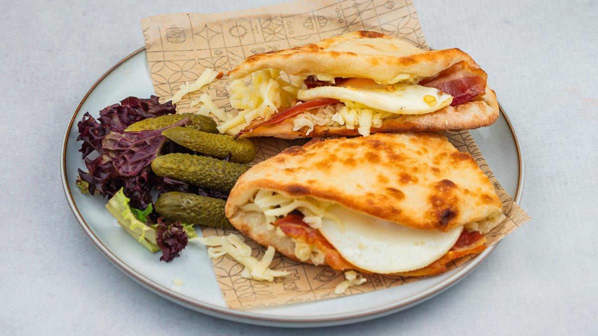 domaća lepinja, jaje, hrskava slanina, rendani sir, domaći majonez
