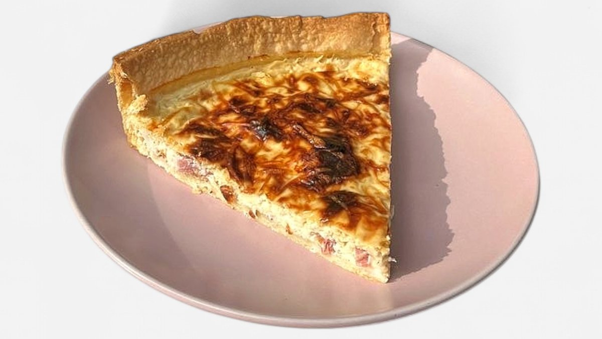 Киш Лоррен (с беконом и сыром) мука, масло, яйцо, сметана, сыр, бекон, соль, перец Quiche Lorraine (sa slaninom i sirom) brašno, puter, jaja, pavlaka, sir, slanina, so, biber